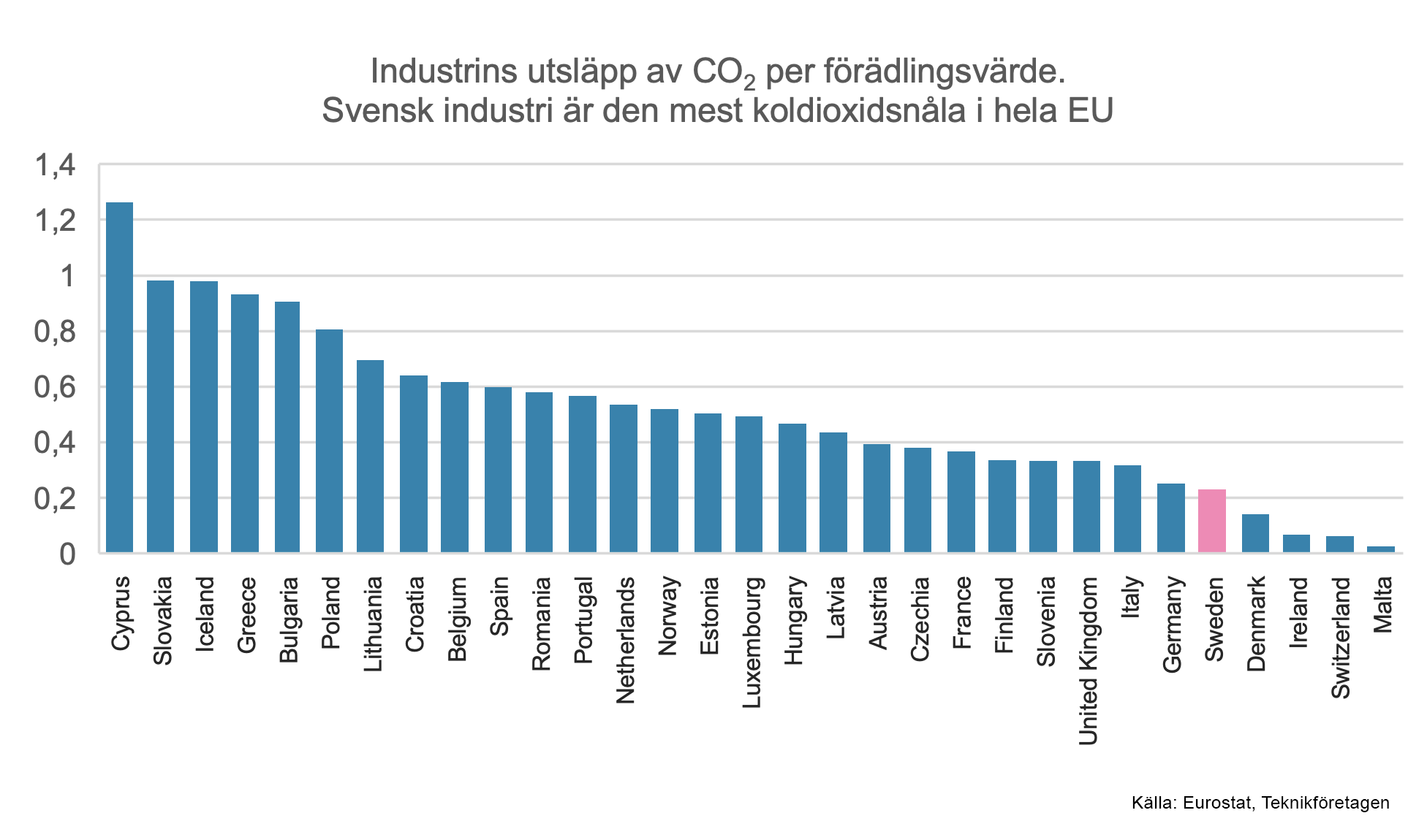 Data från Svenskt Näringsliv som presenterades i november 2021 visade att Sverige gått miste om över 50 miljarder kronor i investeringar samt hundratals jobb på grund av osäkra tillståndsprocesser. Samtidigt visar beräkningar från Teknikföretagen att svensk industri sparat över 150 miljoner ton CO2 sedan 1990 jämfört med om motsvarande produktion istället skulle skett i EU-genomsnittet. De är således kontraproduktivt ur klimatsynpunkt att skifta produktionen till andra länder. Detta illustrerar hur oförmågan att väga miljö- mot klimatnytta och samhällsekonomiska aspekter riskerar att sinka det gröna skiftet och äventyra framtida investeringar i gröna lösningar.