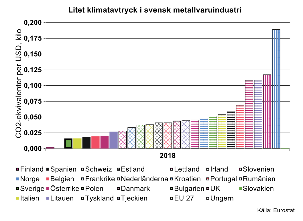Data för metallvaruindustrin bekräftar bilden av svensk industri som klimatsmart i ett EU-perspektiv (se bilden nedan).